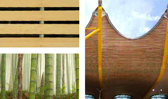 竹天花板由5層竹刨切板(和2層玻璃纖維)組成,它們被壓制在一起。單層結(jié)構(gòu)以確保其穩(wěn)定性及柔韌性。經(jīng)過防火浸注的板材可以滿足歐洲和美國非常嚴格的防火標準。